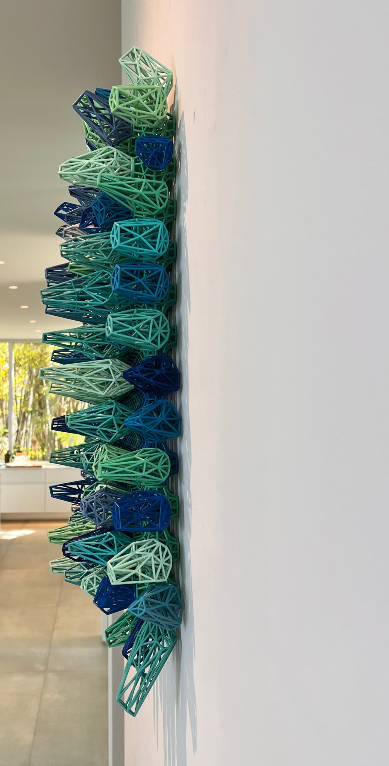 In summary, “Crystal Wire Art” is a captivating fusion of geometry, texture, and color. The art stands out for its intricacy in the way it transforms wire lattices into complex, three-dimensional forms that play with light, shadow, and depth. It is a piece that not only enhances the aesthetic of a space but also invites ongoing engagement and exploration.